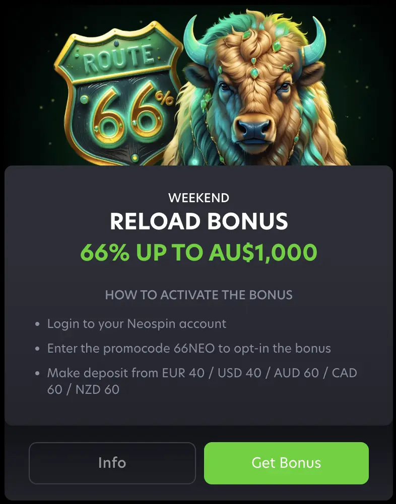 | 66% weekend reload | 66NEO |
